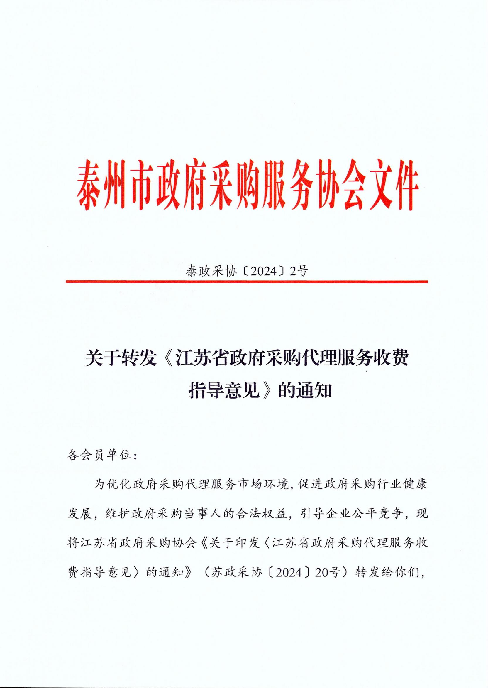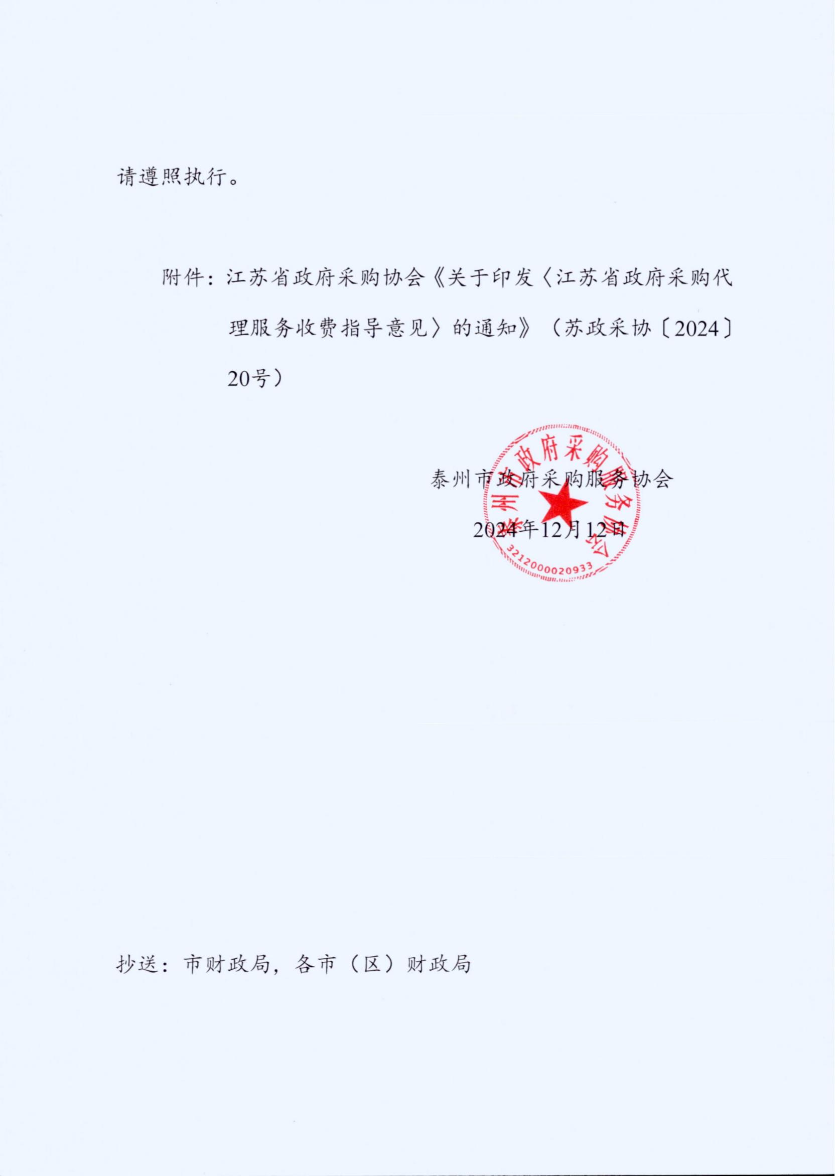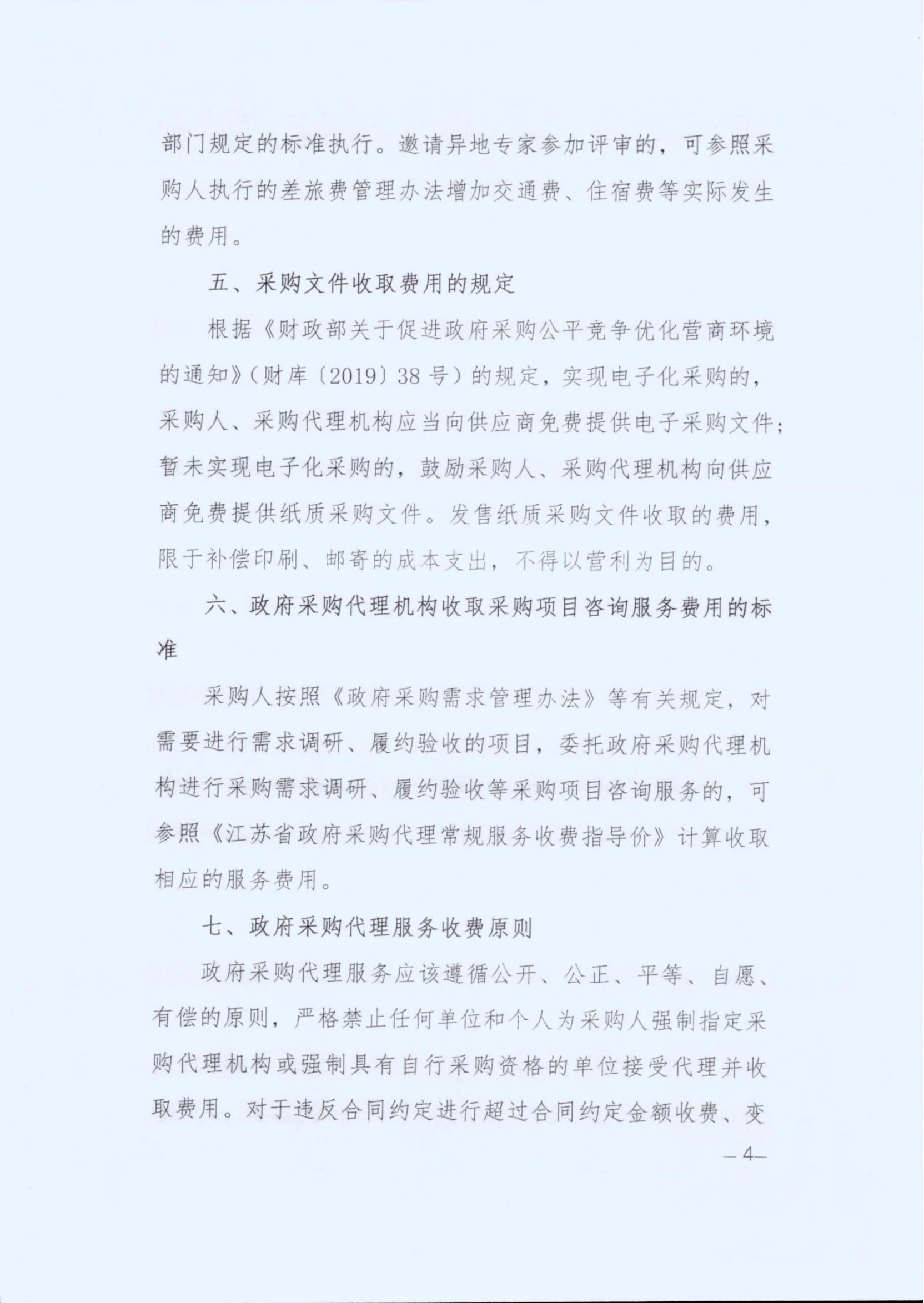 《江苏省政府采购代理服务收费指导意见》 苏政采协【2024】20号