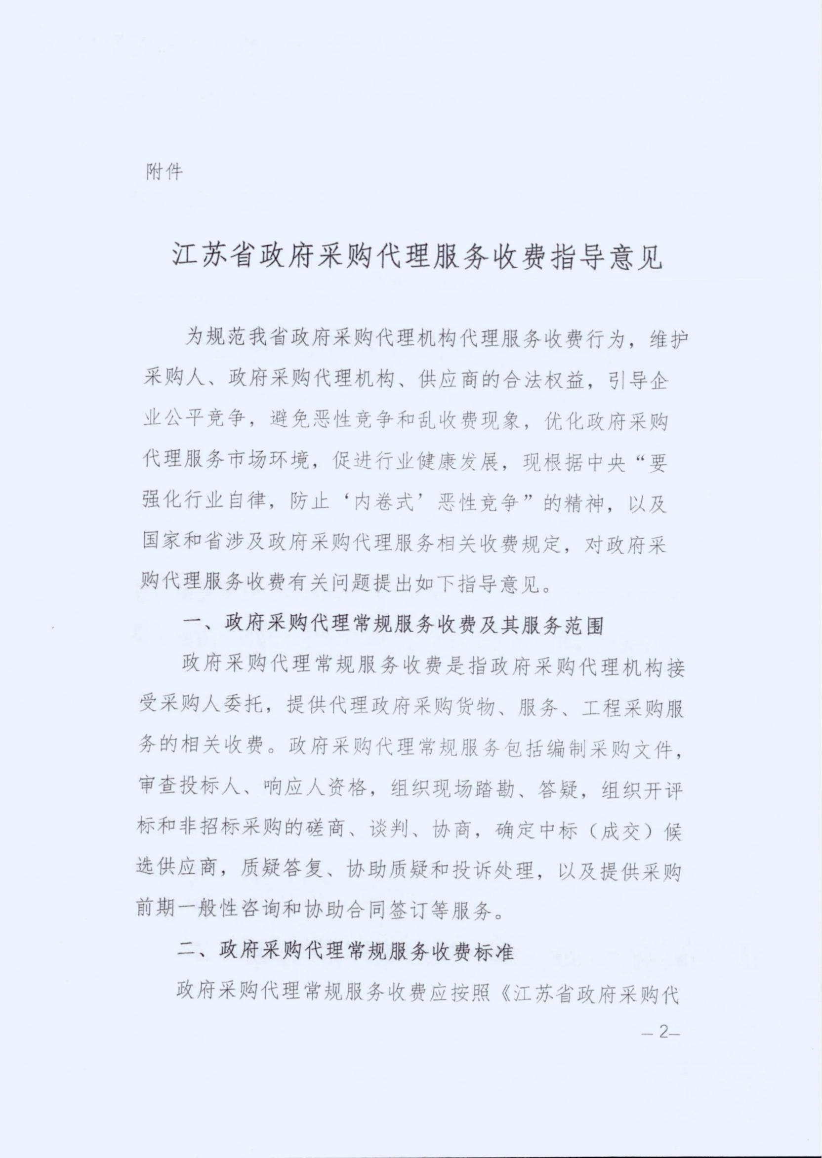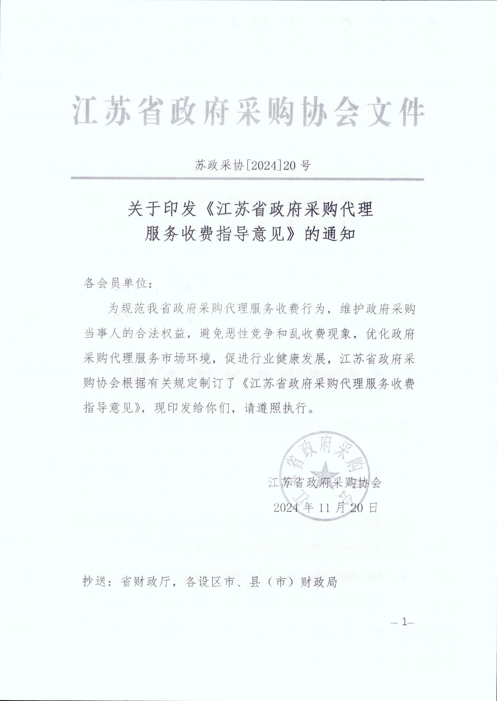 《江苏省政府采购代理服务收费指导意见》 苏政采协【2024】20号